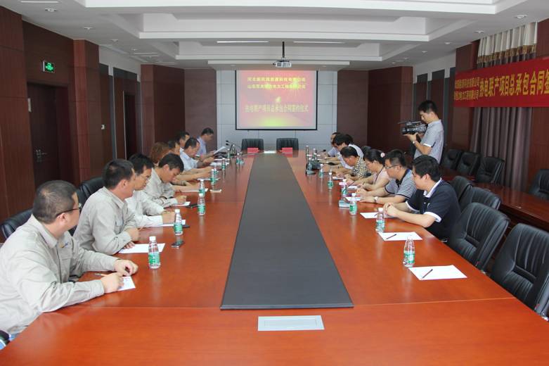 簽約儀式上,河北中捷石化集團有限公司總經(jīng)理于國臣與山東雙良恒力電力工程有限公司總經(jīng)理李樹平分別介紹了雙方公司的基本情況,同時表示了建立長久合作的良好愿望;河北新欣園能源科技有限公司董事長李志剛簡要介紹了熱電聯(lián)產(chǎn)項目基本情況,以及相關計劃、任務和指標等相關內容;河北中捷石化集團有限公司董事長王振華就項目簽約做重要講話,對項目的可行性和發(fā)展前景予以充分的肯定。隨后,李志剛董事長與李樹平總經(jīng)理分別代表雙方企業(yè)正式簽訂了熱電聯(lián)產(chǎn)項目總承包合同。