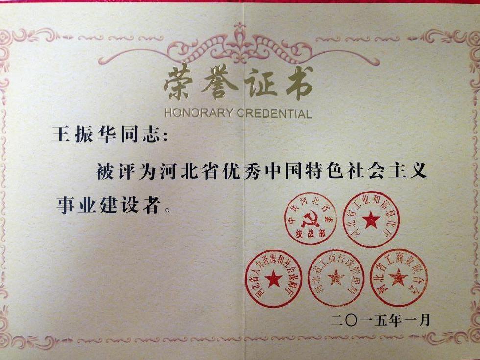 1月4日,第五屆河北省優(yōu)秀中國特色社會主義事業(yè)建設者表彰大會在石家莊召開,包括集團公司董事長王振華同志在內的48名非公有制經濟人士和其他社會階層人士獲得了“優(yōu)秀中國特色社會主義事業(yè)建設者”榮譽稱號。