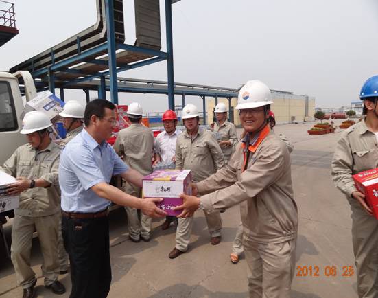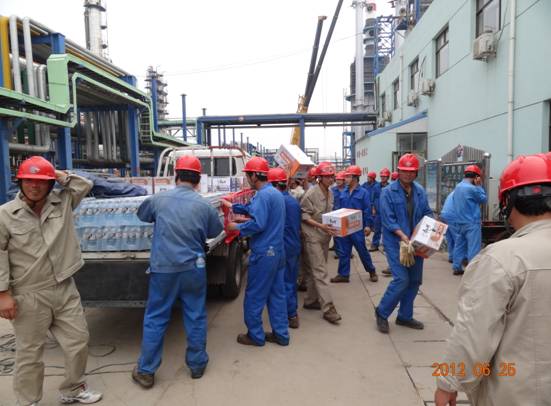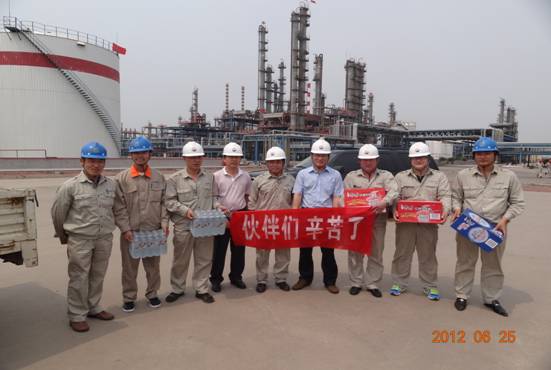 為表達(dá)集團(tuán)公司對(duì)一線檢修員工的關(guān)愛(ài),6月25日上午,總經(jīng)理于國(guó)臣等集團(tuán)領(lǐng)導(dǎo)來(lái)到中海石油中捷石化有限公司(合營(yíng)公司)和新啟元公司檢修現(xiàn)場(chǎng)進(jìn)行了慰問(wèn),并為他們送去了礦泉水和方便面。希望大家在檢修期間繼續(xù)發(fā)揚(yáng)“不怕吃苦、任勞任怨、無(wú)私奉獻(xiàn)”的精神,在確保安全的基礎(chǔ)上,能夠按時(shí)保質(zhì)保量的完成檢修任務(wù)。