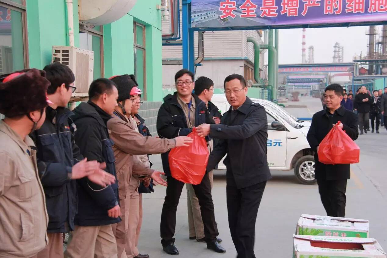 集團公司領導一行先后來到捷馨建材公司地熱泵站、華辰加油站、新欣園、新啟元公司為值守人員送去水果、餃子等慰問品,并送上新春祝福。