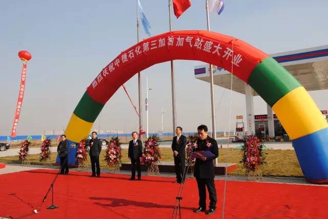 暖陽(yáng)高照、彩旗飄揚(yáng),典禮現(xiàn)場(chǎng)處處都洋溢著歡慶的景象。在西廣場(chǎng)旗臺(tái)下,華辰石油公司崔志河主持了開(kāi)業(yè)典禮儀式,并對(duì)第三加油加氣站的情況及技術(shù)動(dòng)態(tài)做了簡(jiǎn)單介紹。之后,中捷石化集團(tuán)總經(jīng)理于國(guó)臣為典禮致辭。致辭中,于總代表集團(tuán)公司對(duì)開(kāi)業(yè)表示祝賀,對(duì)百忙之中專程參加開(kāi)業(yè)慶典活動(dòng)的伙伴表示熱烈的歡迎和衷心的感謝,對(duì)參與油氣站建設(shè)的施工單位及建設(shè)者們表示最崇高的敬意。隨后又對(duì)加油加氣站未來(lái)發(fā)展提出了遠(yuǎn)大的規(guī)劃要求與設(shè)想,為華辰石油發(fā)展提供了有益的參考。同時(shí)于總表示,在社會(huì)各界朋友的幫助下,在大家積極關(guān)注、大力支持和滿懷希望的期待下,包括第三加油加氣站在內(nèi)的華辰加油加氣站,必將會(huì)為全區(qū)人民打造一個(gè)誠(chéng)實(shí)守信、質(zhì)優(yōu)價(jià)廉、高標(biāo)服務(wù)、品牌一流的服務(wù)型企業(yè),以及中捷農(nóng)場(chǎng)對(duì)外形象的一個(gè)文明窗口。