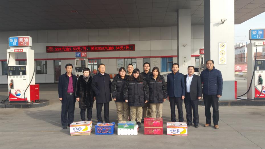 慰問團(tuán)一行先后慰問了黃驊華悅凱旋大酒店、河北捷馨建材有限責(zé)任公司地?zé)峁颈谜?、滄州臨港華辰石油產(chǎn)品有限公司第一加油站、河北華鑫洺源石油儲運(yùn)有限公司、河北新欣園能源股份有限公司和河北新啟元能源技術(shù)開發(fā)股份有限公司。集團(tuán)領(lǐng)導(dǎo)向辛苦值守在工作崗位上的伙伴們致以新春的問候,祝他們和家人新年快樂、合家幸福美滿,并送上節(jié)日慰問品,表達(dá)一份美好的祝福。
