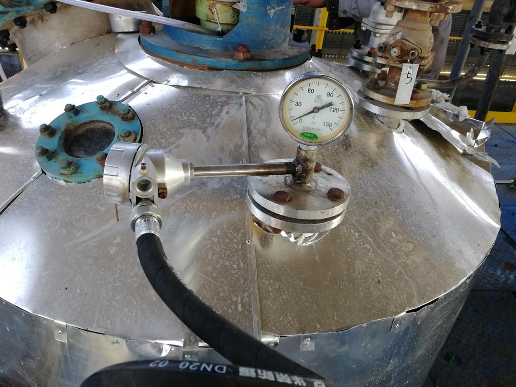 這幾天,新啟元運(yùn)行七部儀表正常班班長王孝龍“偷偷”打起了溫度計(jì)的主意。在塔罐林立的裝置現(xiàn)場(chǎng),三個(gè)反應(yīng)釜上用來測(cè)量罐內(nèi)溫度的雙金屬溫度計(jì)引起了王孝龍的注意,由于設(shè)備原裝的溫度計(jì)沒有數(shù)據(jù)遠(yuǎn)傳功能,要想掌握罐內(nèi)溫度,只能爬到二層平臺(tái)上現(xiàn)場(chǎng)查看儀表數(shù)據(jù),不便于裝置操作。為了提高日常裝置操作的工作效率,王孝龍決定要進(jìn)行一次創(chuàng)新改造。