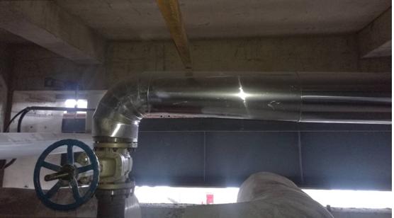 新欣園150噸鍋爐裝置設(shè)有一臺低壓除氧器,目的是通過低壓蒸汽加熱鍋爐給水,在一定壓力下達(dá)到水的飽和溫度點,析出水中的溶解氧,從而避免鍋爐承壓部件避免氧腐蝕。低壓除氧器原加熱蒸汽是通過工業(yè)汽輪機(jī)背壓后,產(chǎn)生0.1MPa的蒸汽作為熱源,工業(yè)汽輪機(jī)設(shè)計是汽輪機(jī)、電動機(jī)、給水泵的三機(jī)組,通過工業(yè)汽輪機(jī)做功,減少電動機(jī)的功率,拖動高壓給水泵,節(jié)約部分電耗。鍋爐的燃?xì)飧脑?,蒸汽成本直線上升,三機(jī)組的運行已經(jīng)不能起到節(jié)能的作用。