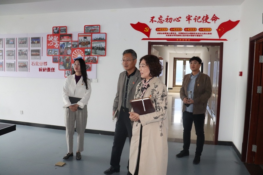 王玉芬書記一行首先視察了黨建活動(dòng)陣地,查看了集團(tuán)黨委黨建文化墻、黨員活動(dòng)室、圖書室等黨建板塊,對(duì)集團(tuán)黨委黨建硬件設(shè)施給予了高度評(píng)價(jià),同時(shí)對(duì)黨建陣地的優(yōu)化升級(jí)提出了指導(dǎo)性意見。