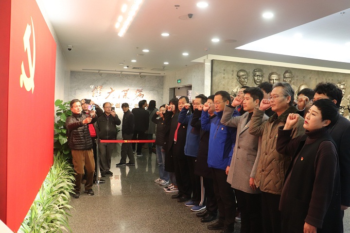 回顧光輝歷史,追尋不變初心。于書記同黨員干部們懷著尊崇與激情的心情走進中共一大會址,瞻仰中共一大代表群像浮雕后,在鮮紅且莊嚴的黨旗下重溫了入黨誓言,尋找著初心本源。