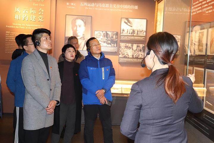 隨后在中共一大會址展覽廳,先后參觀了“前赴后繼、救亡圖存”、“風云際會、相約建黨”、“群英匯聚、開天辟地”等專題展區(qū)。各展區(qū)內(nèi)陳列著中國共產(chǎn)黨的歷史文物、資料和革命志士的遺物、手跡,集中反映了中國共產(chǎn)黨早期開展革命活動、籌建中國共產(chǎn)黨的歷史脈絡。大家放慢腳步,駐足于歷史記錄痕跡前,表情肅穆且凝重,懷揣著敬仰之心,感受著共產(chǎn)黨人在革命發(fā)展中的擔當和初心,感悟著共產(chǎn)黨人在中國歷史上鐫刻的榮光和使命。