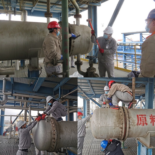 新欣園訊(通訊員 王升)春回大地,柳綠花紅,伴隨著習(xí)習(xí)春風(fēng),新欣園運(yùn)行一部裝置檢修工作正在有條不紊地進(jìn)行著。此前,碳四精細(xì)化工一體化裝置已連續(xù)運(yùn)轉(zhuǎn)450余天,此次停工檢修是為了休整后更好地出發(fā),為此伙伴們拼耐力、搶進(jìn)度、闖難關(guān),全力做好裝置檢修工作。