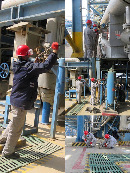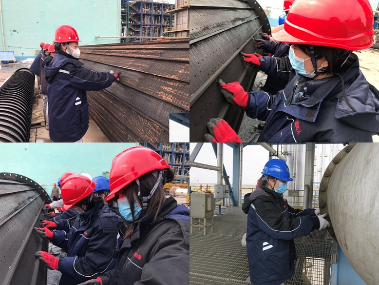 為保質(zhì)保量、安全高效地完成各項(xiàng)檢修項(xiàng)目,公司領(lǐng)導(dǎo)高度重視、親自部署、帶頭沖鋒,相關(guān)部門的伙伴們通力配合、夙興夜寐、拼搏奮進(jìn)。自檢修開始,公司每天早晨對參檢人員進(jìn)行安全宣貫,強(qiáng)調(diào)安全施工的注意事項(xiàng);下午召開檢修工作會議,跟蹤每日檢修進(jìn)度,協(xié)調(diào)檢修過程中的問題,詳細(xì)布置次日檢修計(jì)劃及人員安排。