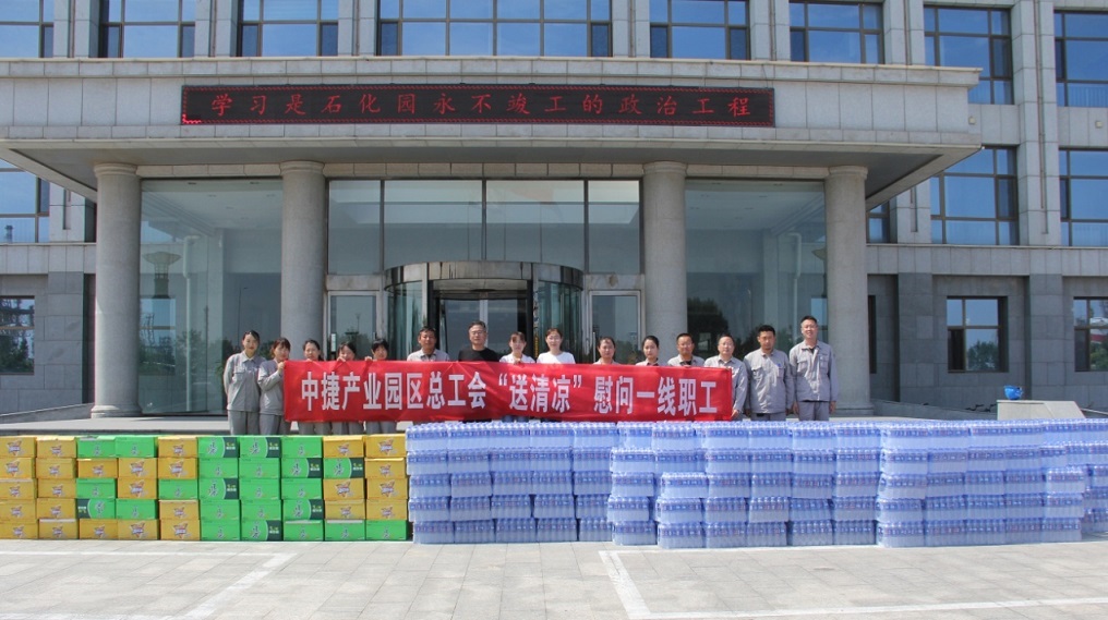 集團公司訊 中捷產(chǎn)業(yè)園區(qū)總工會將“我為群眾辦實事”實踐活動與推動落實《安全生產(chǎn)法》、《防暑降溫措施管理辦法》等法律法規(guī)結(jié)合起來,聯(lián)手河北中捷石化集團工會,深入一線,送上酷暑里的清涼。7月20日上午,園區(qū)總工會領(lǐng)導(dǎo)一行來到集團公司,向一線伙伴們送上誠摯的慰問。集團公司黨委副書記、工會主席朱振江,新啟元公司工會主席張金甫,以及來自生產(chǎn)部門的10余名代表盛情接待。