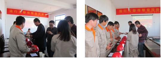2012年10月17日,對于新啟元運行五部來講,是一個可喜可賀的日子。在這陽光明媚的金秋時節(jié),運行五部的新老員工們在公司副總經(jīng)理劉立新、綜合管理部經(jīng)理李樹祥、技術(shù)工程部經(jīng)理王政的見證下,舉行了一次隆重的拜師儀式。此次拜師會的主題是:“一杯拜師茶,帶動你我他!”
