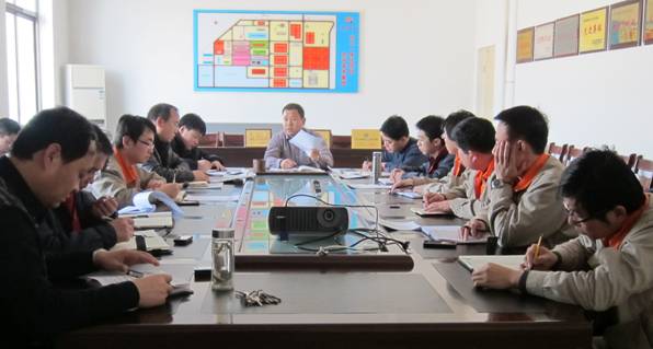2013年1月6日下午2點,在新啟元綜合樓三樓大會議室,由公司董事長李志剛組織蒽油加氫項目及配套工程建設管理機構全體成員,就推進2013年蒽油加氫項目建設進行了動員部署。