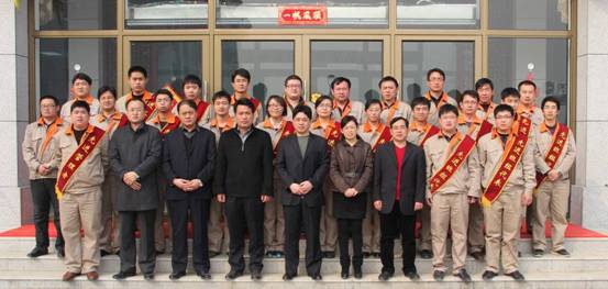 會(huì)后,公司領(lǐng)導(dǎo)與受表彰的先進(jìn)代表在員工食堂門(mén)口合影留念。