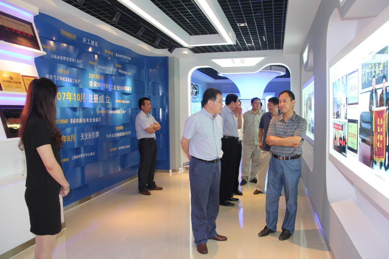 在公司展廳,解說員向在場領(lǐng)導(dǎo)著重介紹了公司現(xiàn)狀、公司理念、公司文化等內(nèi)容。董廳長指出:新啟元公司能夠抓住機(jī)遇、勇于爭先、做到服務(wù)發(fā)展、服務(wù)社會(huì)、服務(wù)群眾這種精神值得大家學(xué)習(xí)。期間,雙方領(lǐng)導(dǎo)就公司現(xiàn)有裝置工藝流程、堅(jiān)持發(fā)展循環(huán)經(jīng)濟(jì)理念等內(nèi)容還進(jìn)行了深入交流。